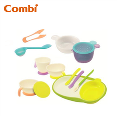 - Bộ đồ ăn tổng hợp 14 món của Combi thuận lợi cho các mẹ dùng để cho bé ăn dặm, phù hợp với từng giai đoạn phát triển. Sản phẩm được làm bằng chất liệu nhựa cao cấp, độ bền cao, dễ dàng sử dụng và được sản xuất theo đây truyền công nghệ tiên tiến nhất của Nhật Bản.