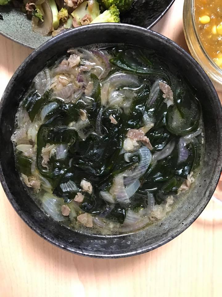 Thịt bò bạn đừng xào ngay từ đầu mà cho 1/3 củ hành tây thái nhỏ vào đảo lên với vài giọt dầu ăn, hành tây đổi sang màu vàng nhạt thì cho thịt vào đảo nhanh, cho ít bột nêm Youki , tẹo muối theo độ mặn của gia đình ăn, đổ nước vào đun sôi thì cho 5-10g rong biển Wakame khô vào đun 30s-1p là được 1 bát to canh rong biển thịt bò
