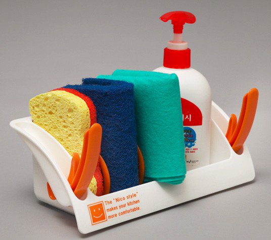 - Giá nhựa đựng dụng cụ rửa chén bát Inomata có thiết kế đơn giản với 2 nút hút chân không dễ dàng dính lên tường. Sản phẩm có kích thước nhỏ gọn có thể treo, đặt ở nhiều vị trí khác nhau trên tường bếp hoặc gần vòi nước.