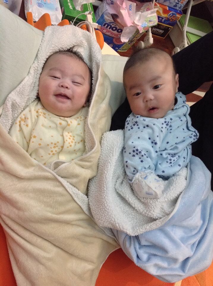 Lúc sinh Ao 2,6kg, Cá 2,8kg. Lúc 6 tháng cả 2 bạn đều 8,5kg.