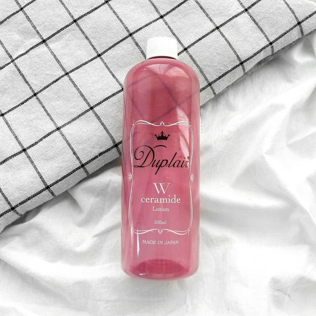 - Lotion Duplair W Ceramide chai lớn 500ml với thiết kế chai nhựa màu hồng đáng yêu. Chứa công thức đặc biệt dành cho da khô và thô ráp