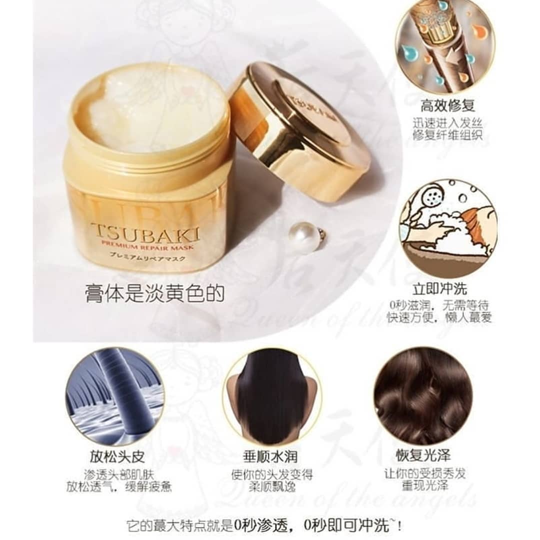 - Mặt nạ phục hồi tóc cao cấp Tsubaki Premium Repair Mask duy trì hiệu quả trong thời gian dài, được các thẩm mỹ viện lớn, các spa và salon làm tóc cao cấp tại Nhật tin dùng.