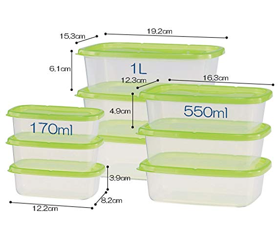 - Set 9 hộp Inomata nhựa cao cấp chịu nhiệt từ -20oC đến 140oC (dùng được trong lò vi sóng).