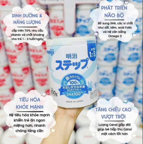 - Meiji là dòng sữa trung tính phát triển đều cả chiều cao và cân nặng cho bé.