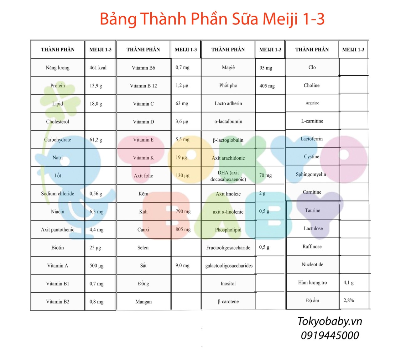 - Sữa Meiji 1-3 không bổ sung thành phần Lactadherin như trong sữa Meiji 0-1.