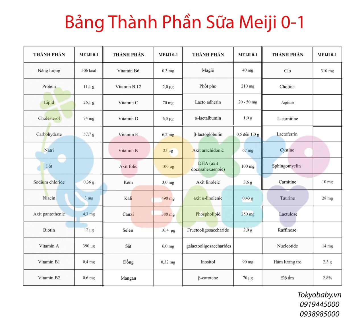 - Sữa Meiji 0-1 có bổ sung thành phần Lactadherin có tác dụng tăng cường hệ miễn dịch, tăng lợi khuẩn đường ruột và ức chế vi khuẩn có hại ở hệ tiêu hóa giúp bé có hệ tiêu hóa khỏe mạnh.