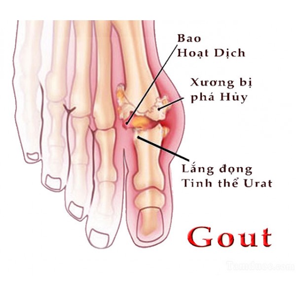 - Bệnh gout đặc trưng bởi những đợt viêm khớp cấp tái phát, khiến người bệnh thường xuyên bị đau đớn ngột giữa đêm, sưng đỏ các khớp khi các đợt viêm cấp bùng phát.